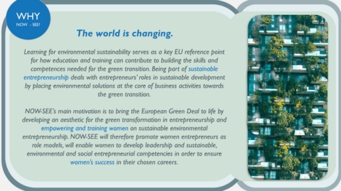 NOW-SEE’s main motivation is to bring the European Green Deal to life by