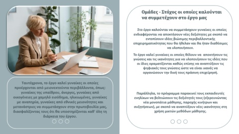 Το έργο καλεί γυναίκες οι οποίες θέλουν να αποκτήσουν τις