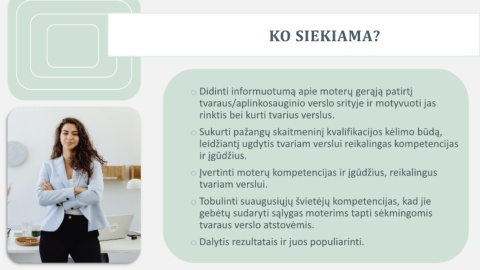 tvaraus/aplinkosauginio verslo srityje ir motyvuoti jas