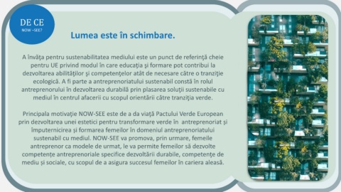 sustenabil cu mediul. NOW-SEE va promova, prin urmare, femeile